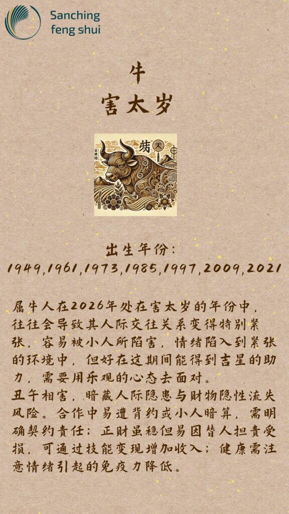 属牛人在2026年处在害太岁的年份中,往往会导致其人际交往关系变得特别紧张,容易被小人所陷害,情绪陷入到紧张的环境中,但好在这期间能得到吉星的助力,需要用乐观的心态去面对。